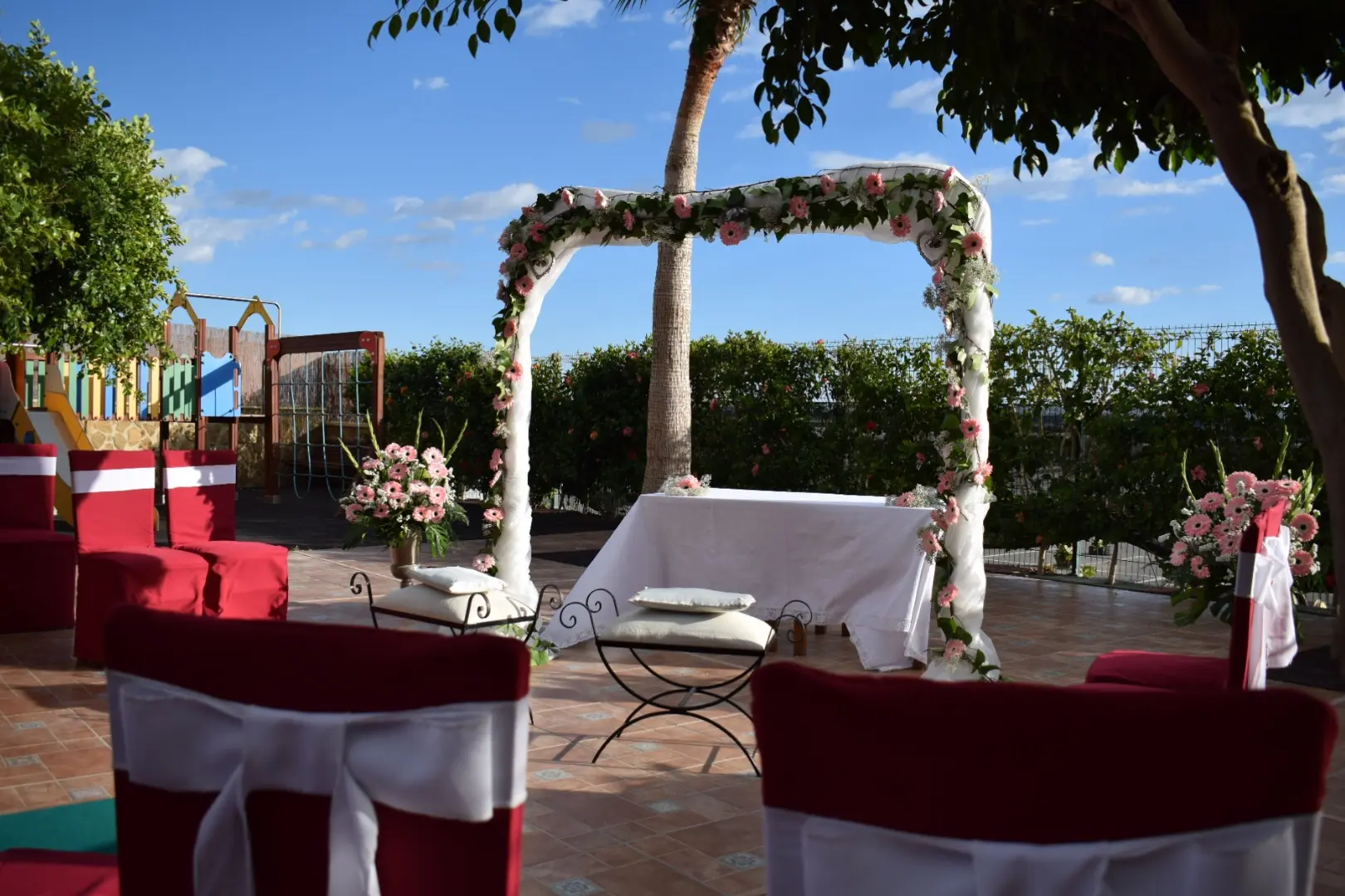 Celebraciones y eventos Nuestra experiencia y nuestras instalaciones nos permiten organizar celebraciones únicas, adaptadas a cada cliente y a cada tipo de evento. 950 56 82 12 Pedir presupuesto Celebraciones y eventos Tipos de eventos BodasComuniones y bautizosCelebraciones familiaresEventos de empresa y conferenciasComidas y cenas de gruposAlquiler de salones para presentaciones y congresos Celebaciones en Adra Salones Disponemos de cinco salones independientes con capacidad total para 800 personas. Aire acondicionado Hilo musical personalizado Luz natural y vistas al exterior Diferentes configuraciones según el evento Servicios adicionales Orquestas y música en directo Floristería y decoración Animación infantil (payasos, hinchables) Menús personalizados (más de 40 opciones) 950 56 82 12 Pedir presupuesto